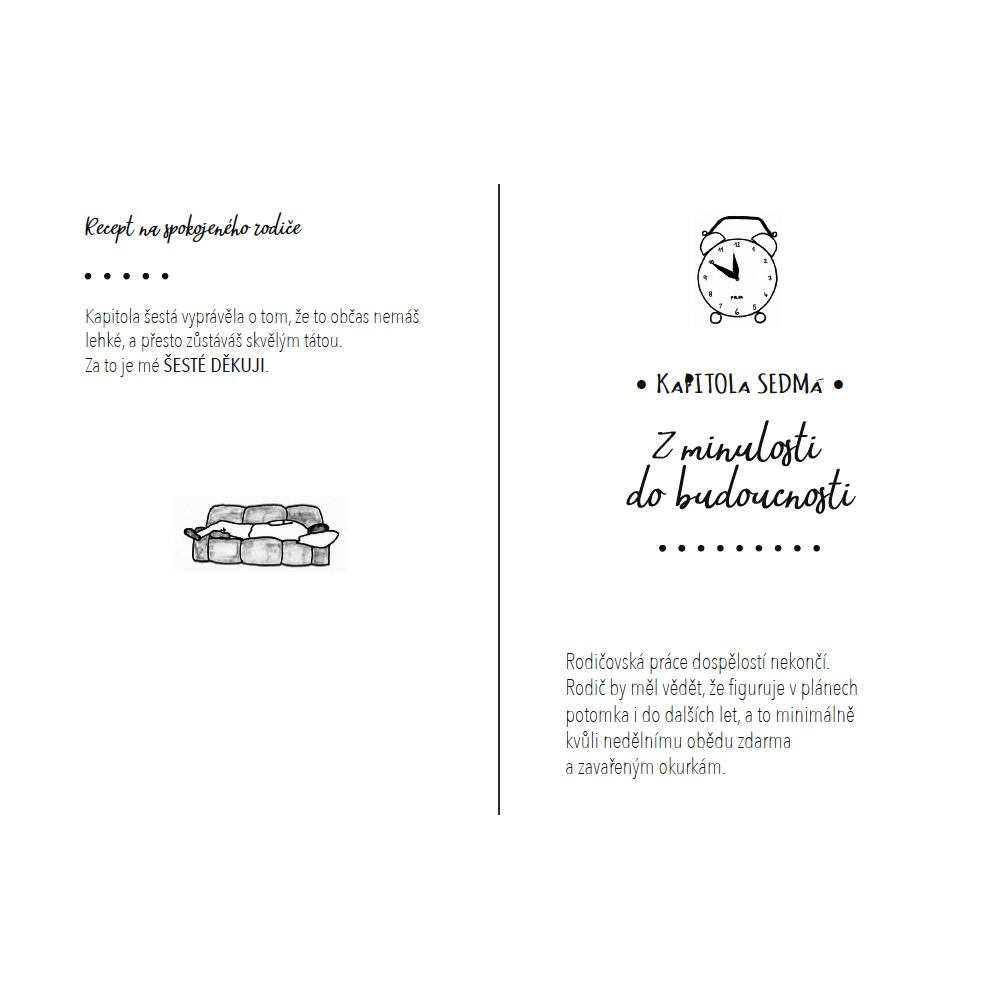 Díky tati! je kniha, kde jste Vy autorem a kterou dotvoříte rodičům na míru jako poděkování za to, co pro Vás dělali a dělají. Nebojte, nemusíte nic složitého vymýšlet – provedeme vás kapitolu za kapitolou. Myslíte si, že si Vaši rodiče takové poděkování zaslouží? Říct to jen tak je ale těžké. My přišli s něčím, jak Vám to ulehčit. Dokážete to snadným a osobitým způsobem. Pobavíte je a možná i dojmete.