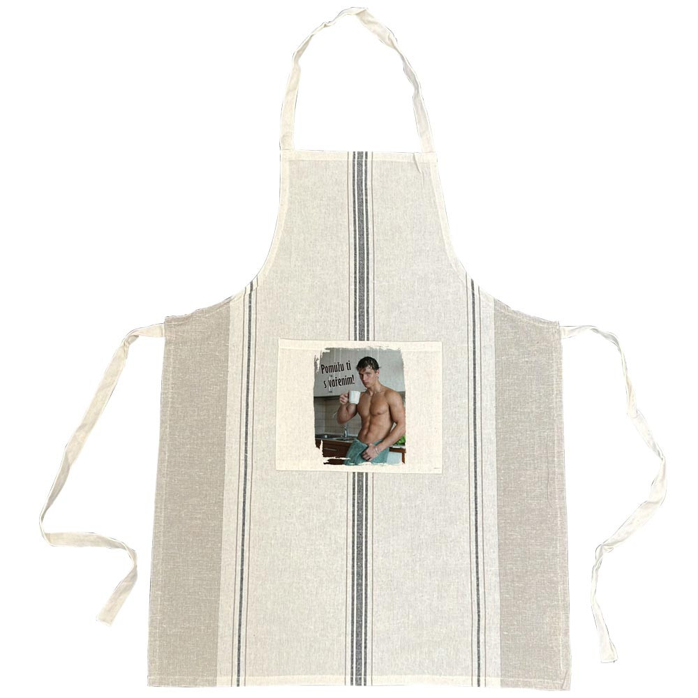 Kuchyňská zástěra v přírodních béžových barvách s potiskem Pomůžu ti s vařením je krásný dárkem pro všechny ženské milovníky vaření s motivem mužem. Zástěra je vyrobena digitální inkoustovou technologií na bavlněný materiál. Vyrobeno v České republice.