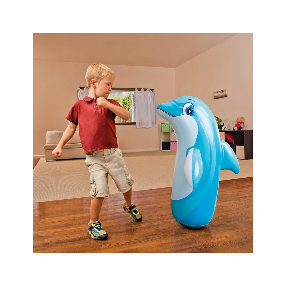 Nafukovací boxovací pytel od firmy Intex ve tvaru Dinosaura. Ideální doplněk pro každého malého boxera, pomůže dětem vybít přebytečnou energii a odreagovat se. Ve spodní části hračky je zabudovaná vodní komora, která pytel zatíží a zajisti stabilitu. Je vyroben z bezpečných a odolných materiálů. Je určen k použití venku i uvnitř.