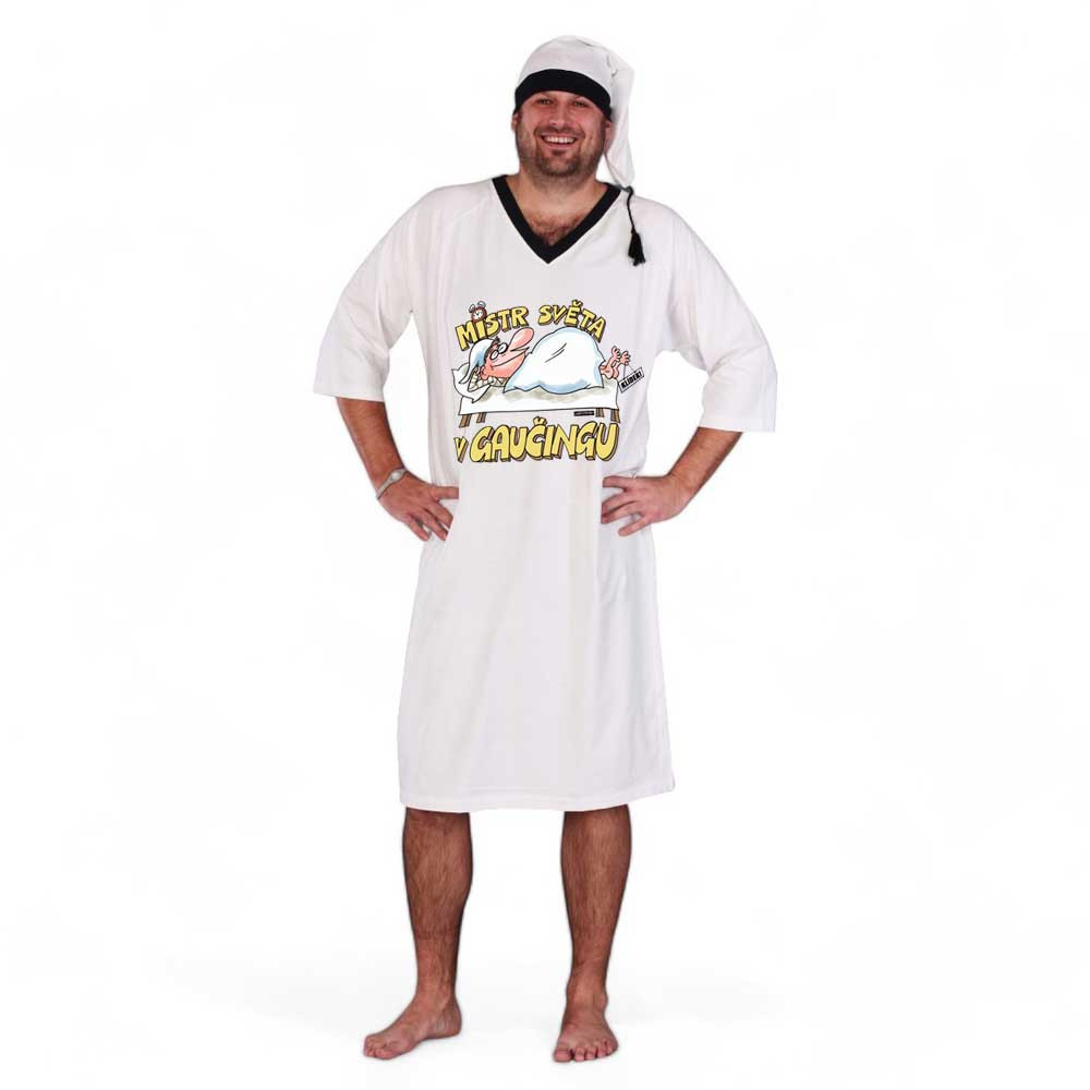 Unisex noční košile s krátkým rukávem univerzálního střihu s noční čepičkou a vtipnými potisky. Rozveselte svého spolunocležníka, vneste do Vaší ložnice krapet humoru! Pohodlná noční košile je určena pro pány i pro dámy, stačí vybrat správnou velikost a téma, které je Vám nejbližší.