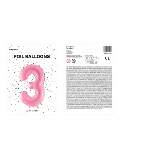 Pastelový foliový balón ve velkém provedení v designu čísla 3. Tento fóliový balónek ve světle růžové barvě je výborným doplňkem na jakoukoliv oslavu nejen narozeninovou. Čísla můžete různě kombinovat.
