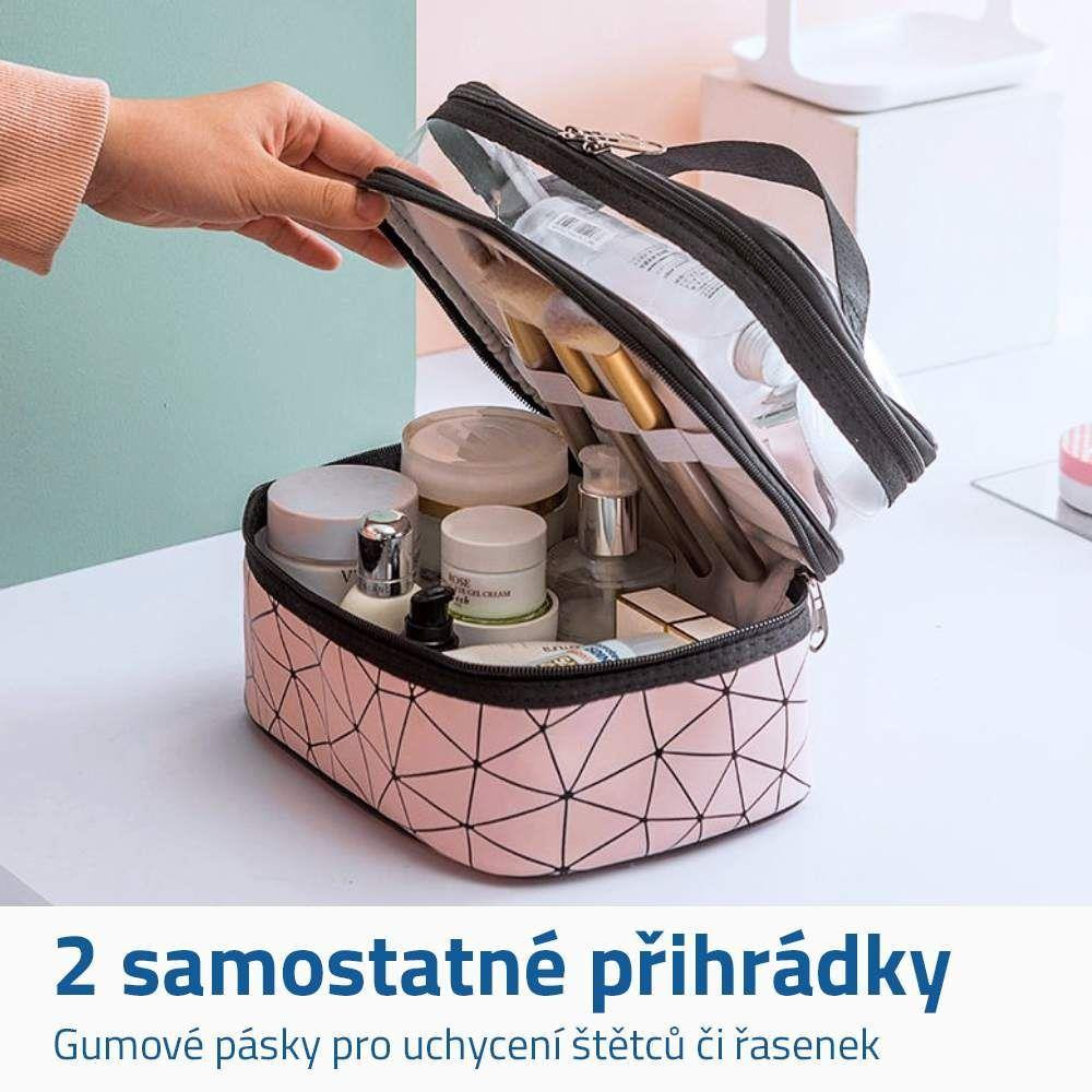 Uspořádaná kosmetika doma i na cestách. Dvoupatrový kosmetický organizér = perfektně uspořádaná kosmetika a to je sen každé ženy. Vrchní přihrádka je průhledná a tak hned uvidíte, co kde máte. Díky oddělenému prostoru si jednoduše uspořádáte a oddělíte například líčidla od hygienických potřeb.
