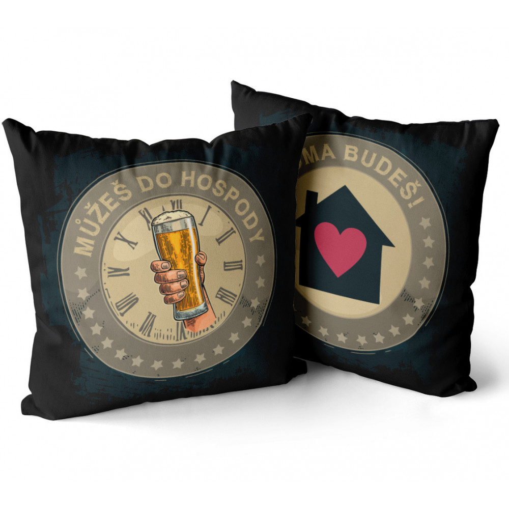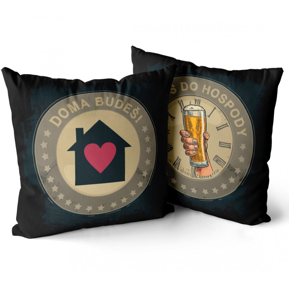 Polštářek je příjemný na dotek. Polštářek s vtipným motivem je oboustranný, pro každého správného pivaře.