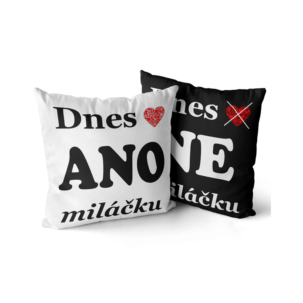Žertovný polštářek s originálním potiskem Dnes ANO/ Dnes NE miláčku je vyrobený z příjemného materiálu. Vedle "komunikace" s vaším partnerem (stačí ho natočit tou správnou stranou) vám poslouží také k odpočinku u oblíbeného seriálu či napínavého filmu.