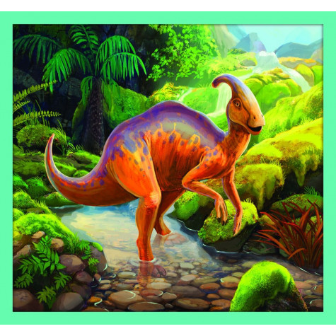 Puzzle s motivem oblíbených dinosaurů. Deset samostatných puzzle s různým počtem dílků - 4x 20 dílků, 3x 35 dílků, 3x 48 dílků - postupně vedou ke zdokonalování dítěte při skládání a zvyšování obtížnosti.