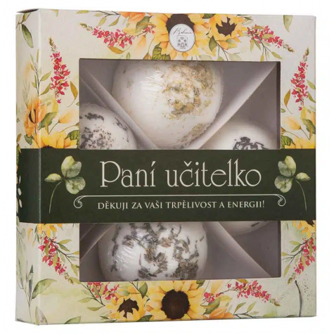 Pralinky do koupele pro paní učitelku jsou originální kosmetický balíček, který obsahuje 4 pěnivé a šumivé do vany. Překvapte paní učitelku originálním a praktickým kosmetickým dárkem, který jí připomene, že její práce je velmi důležitá a ceněná.