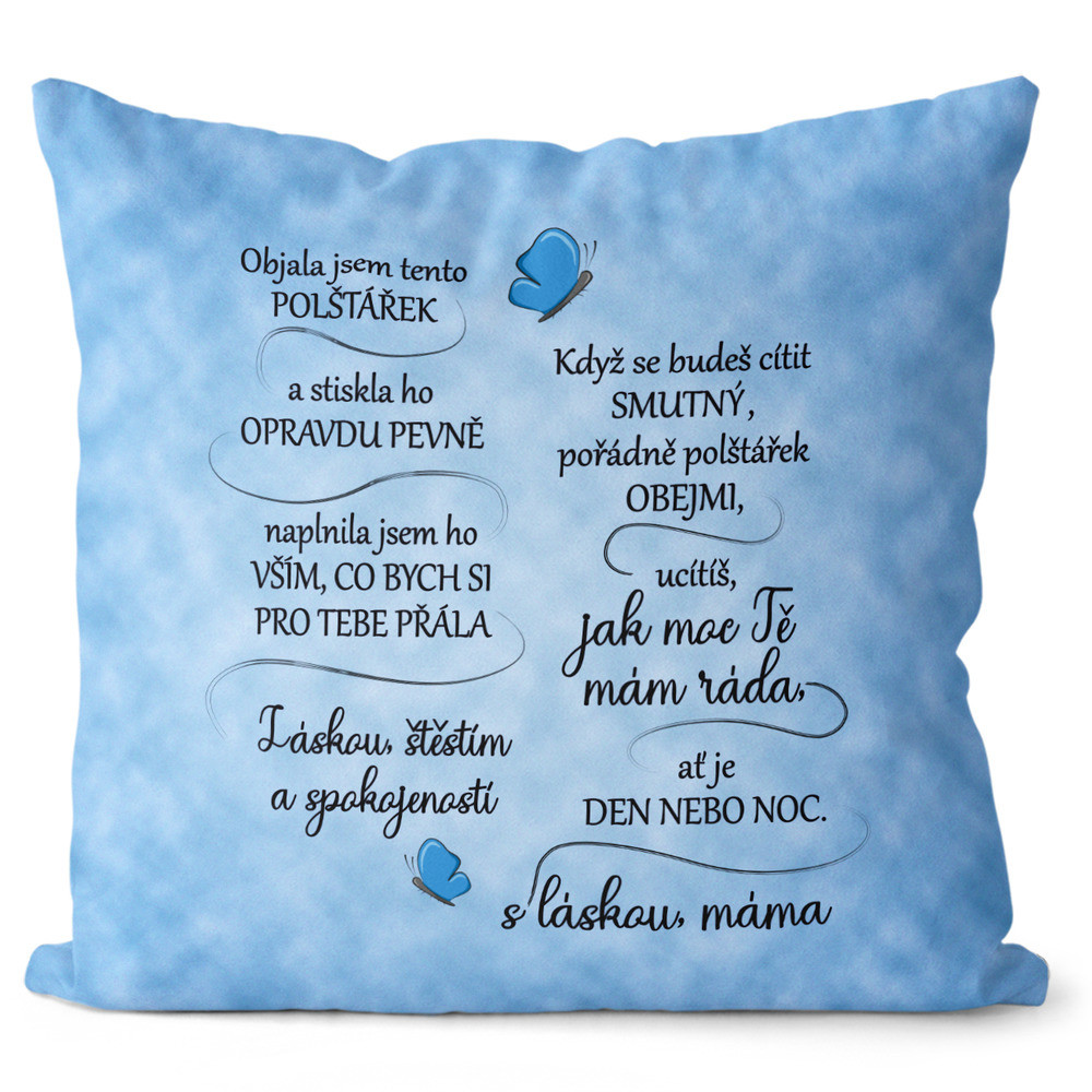 Originální polštářek s vtipným textem a motivem. Má oboustranný potisk se zapínáním a vyjímatelnou výplň. Polštářek s motivem pro syna.