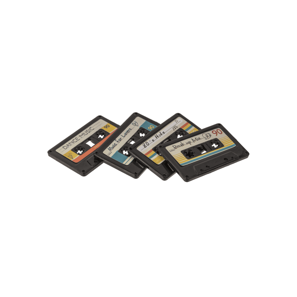 Originální retro vintage mini magnetky v designu hudebních kazetek. Sada 4 kusů balená na kartě.