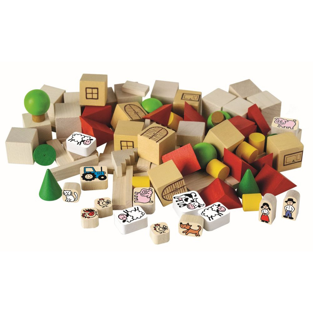 Děti si za pomocí hracích destiček složí farmu, kde jsou domky, stodola, ohrada a zvířátka. Vše je doplněné kostičkami farmáře, jeho ženy a traktoru.