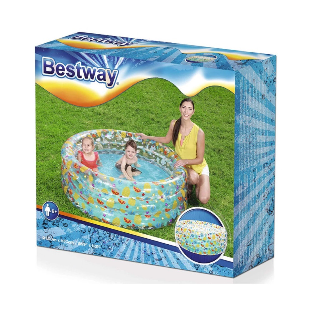 Krásný barevný dětský bazén s tropickým motivem v nádherných barvách určitě potěší všechny dětičky během letních dnů. Jistě si nedovedete představit léto bez nafukovacího bazénku, který k teplému počasí neodmyslitelně patří. Zpříjemněte dětem horké letní dny, kdy s nimi nemůžete vyrazit k vodě.