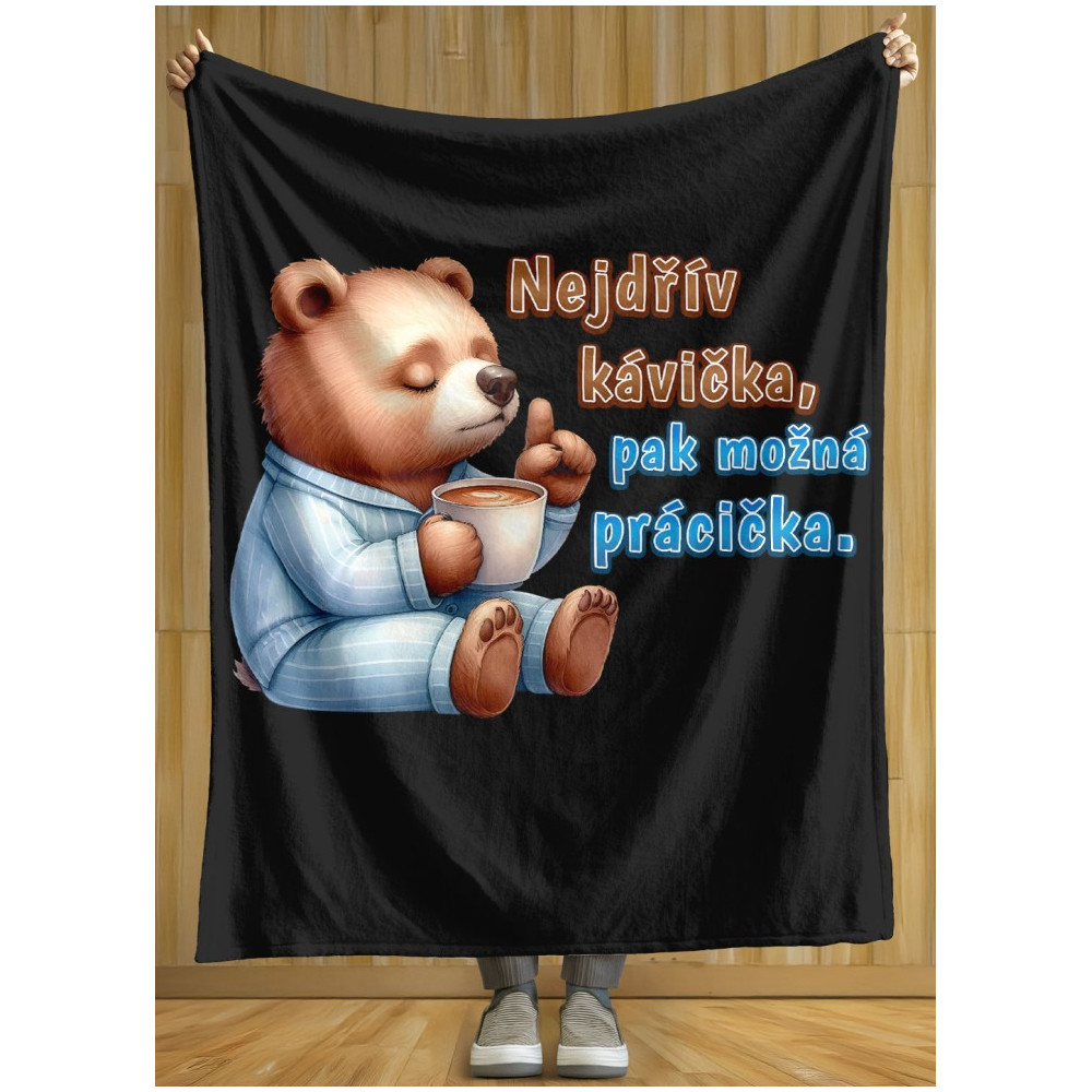 Originální fleecová deka s potiskem pro pracanty co mají rádi prvně kávu. Udělejte radost touto praktickou a teplou dekou s krásným citátem.