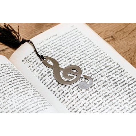 Kovová záložka do knihy ve tvaru houslového klíče potěší každého milovníka hudby a knihomola. Samotný klíč zavřete mezi stránky, zatímco střapec na šňůrce Vám spolehlivě ukáže cestu mezi listy, kde jste posledně skončili se čtením Vaší knihy.
