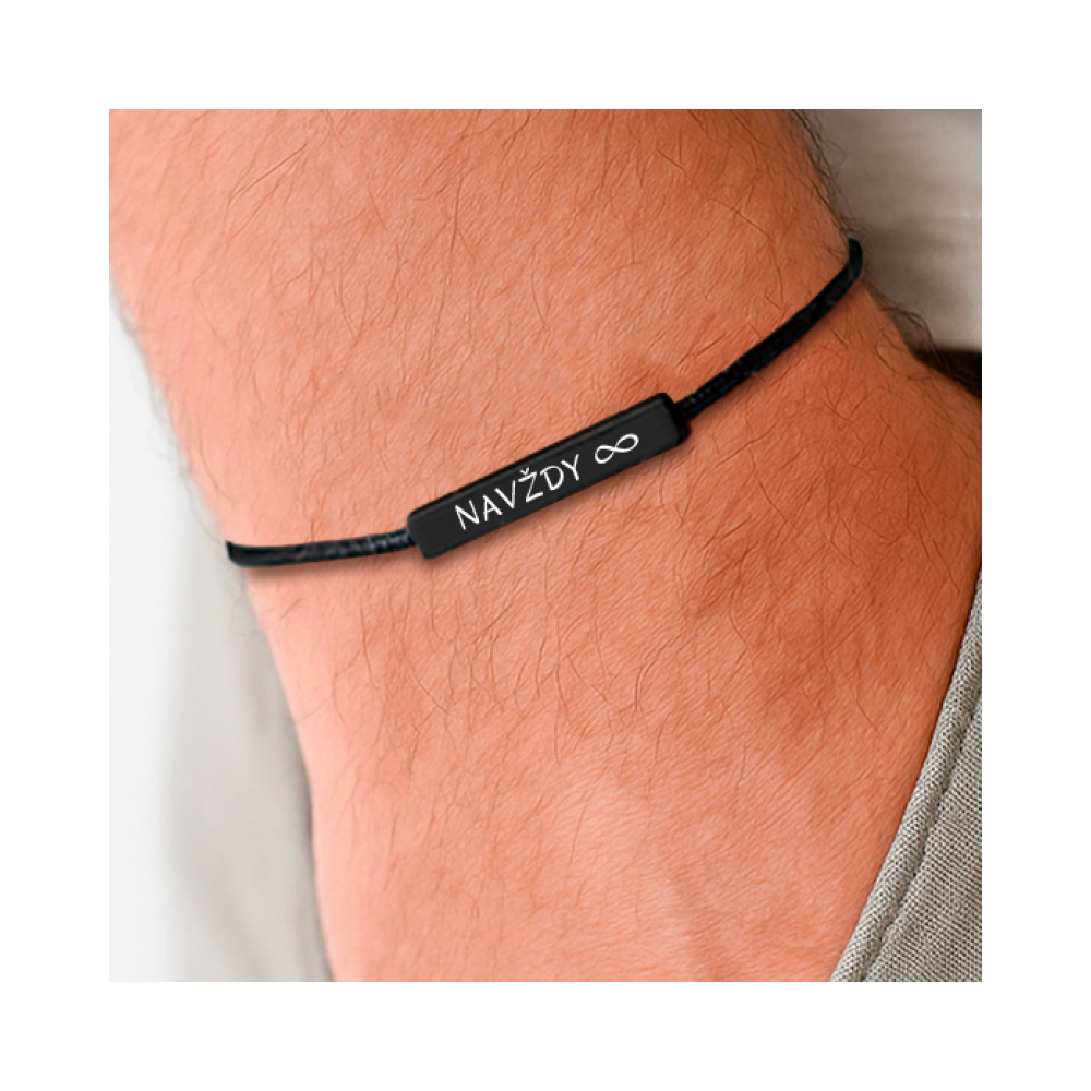 Minimalistický náramek v černé barvě s věnováním. Zkombinujte praktičnost s osobním dotekem. Tento náramek nabízí ideální rovnováhu mezi elegancí a odolností.