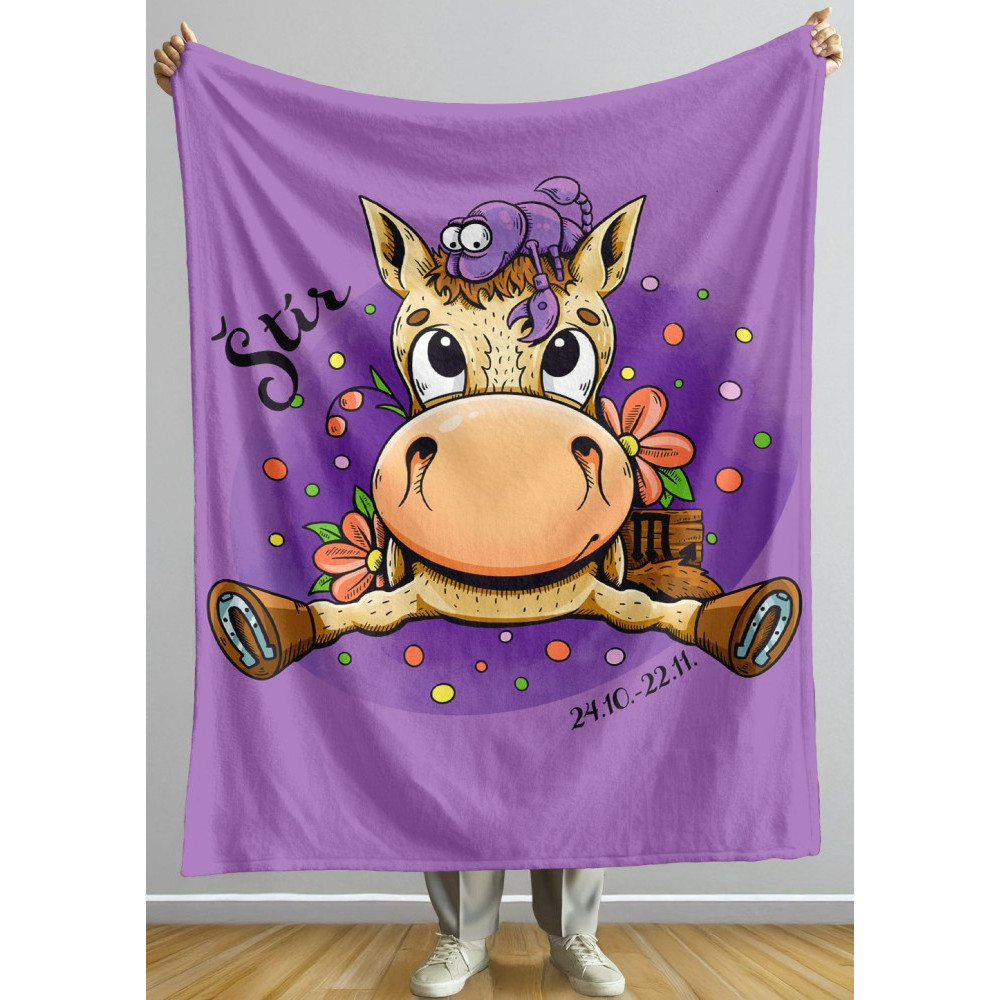 Originální fleecová deka s potiskem zvířátek a koní v motivu znamení zvěrokruhu dle narození. Udělejte radost nejen milovníkům koní touto praktickou a teplou dekou s krásným motivem.