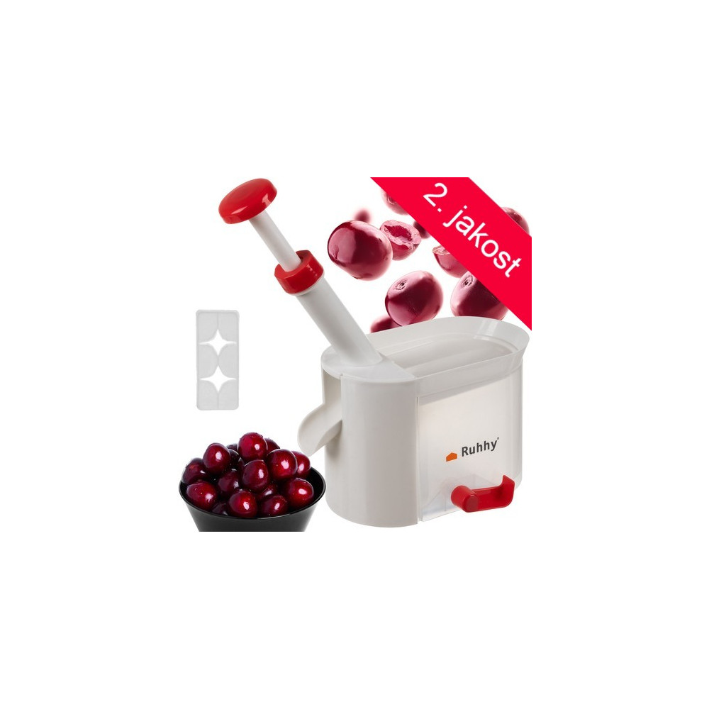 Odpeckovač třešní je ideální pomocník pokud si chcete upéct třešňový koláč nebo si třešně zavařit. Jednoduché, ale účinné zařízení, které třešně při použití nerozdrtí. Na spodní straně je umístěna přísavka, takže přístroj při použití drží na místě. Třešeň i pecka padají do samostatné nádoby.