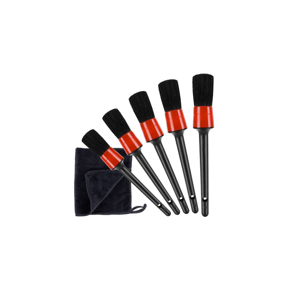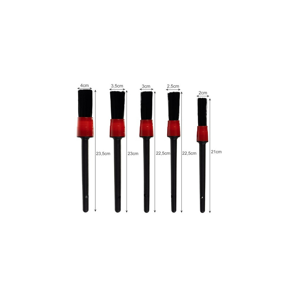 Detailingové štětce vhodné na čištění těžko přístupných míst v autech apod. Balení obsahuje 5 štětců různých velikostí. Součástí je také utěrka s poutkem z mikrovlákna.