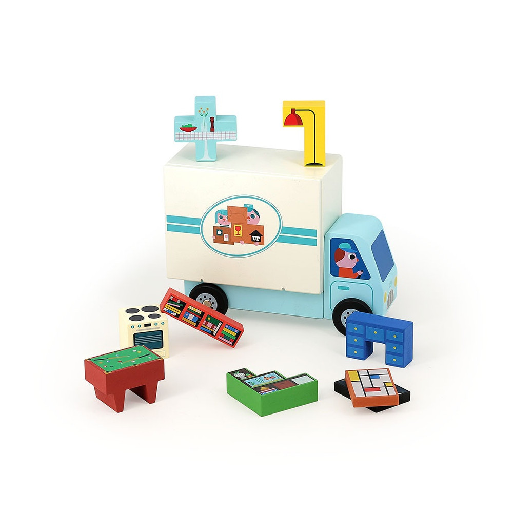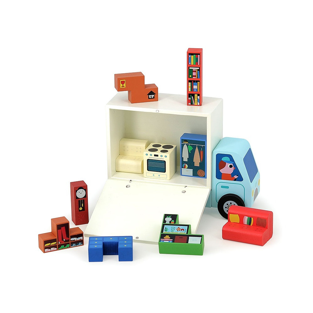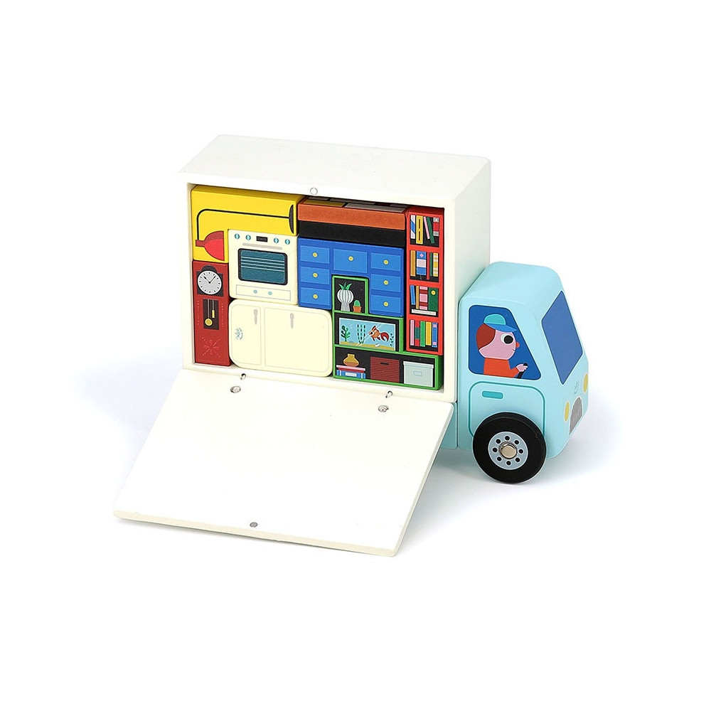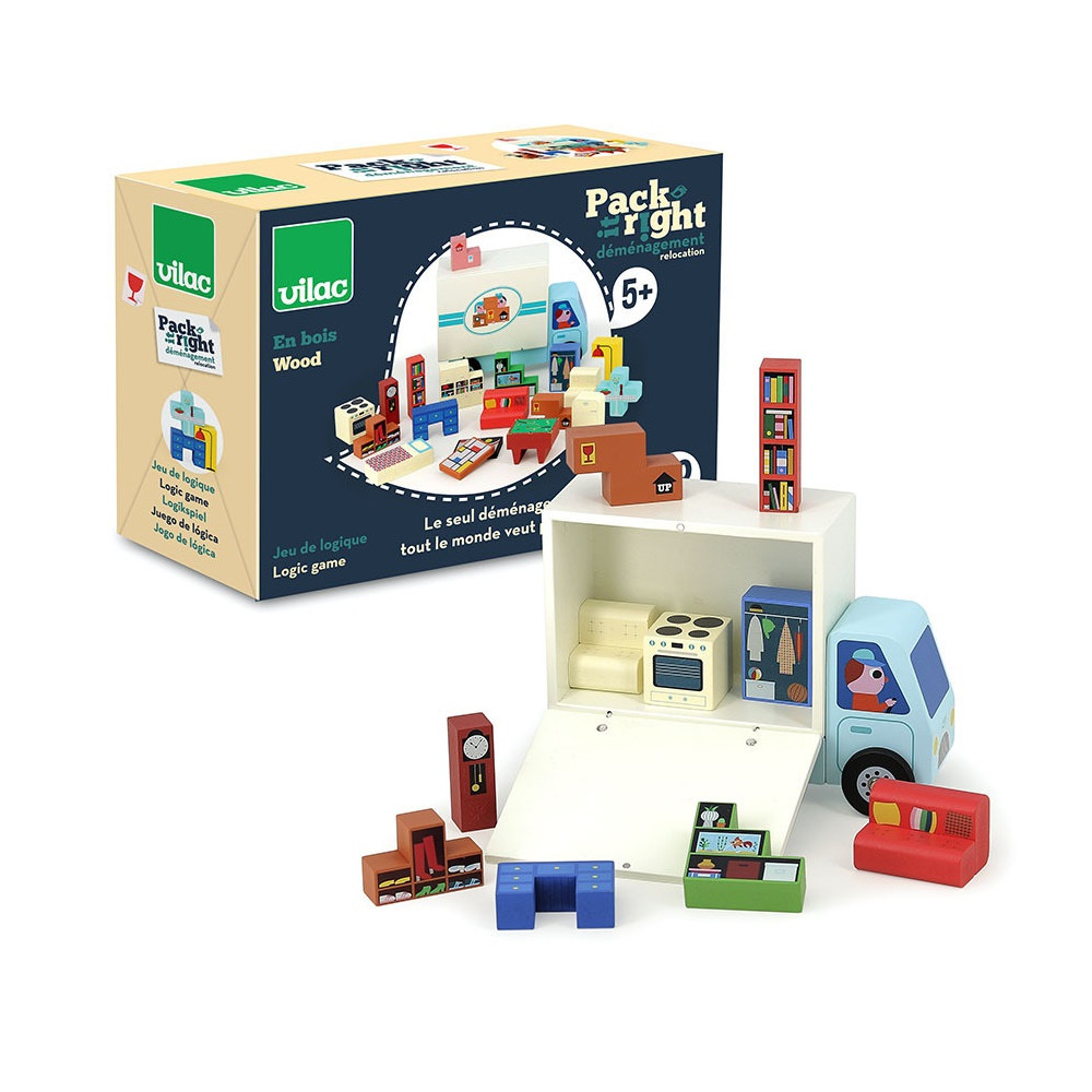 Dřevěná logická hra "Pack It Right" - stěhování, ilustrovaná uznávanou designérkou Ingelou P. Arrhenius, představuje pro děti zábavnou a chytrou výzvu: správně naložit nábytek do stěhovacího vozu tak, aby se vše vešlo. Každý kus - pohovka, stůl, židle a další - má své místo, což dětem pomáhá rozvíjet logické myšlení, prostorovou orientaci i jemnou motoriku.