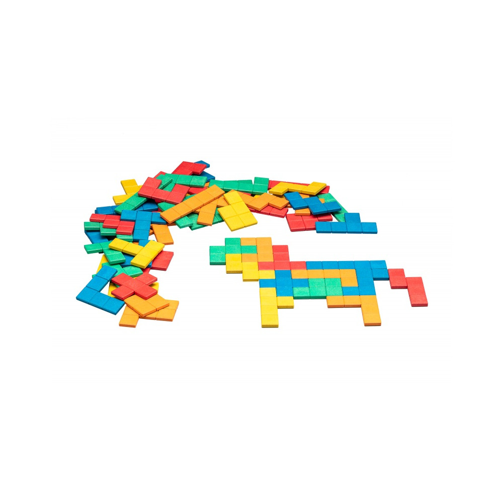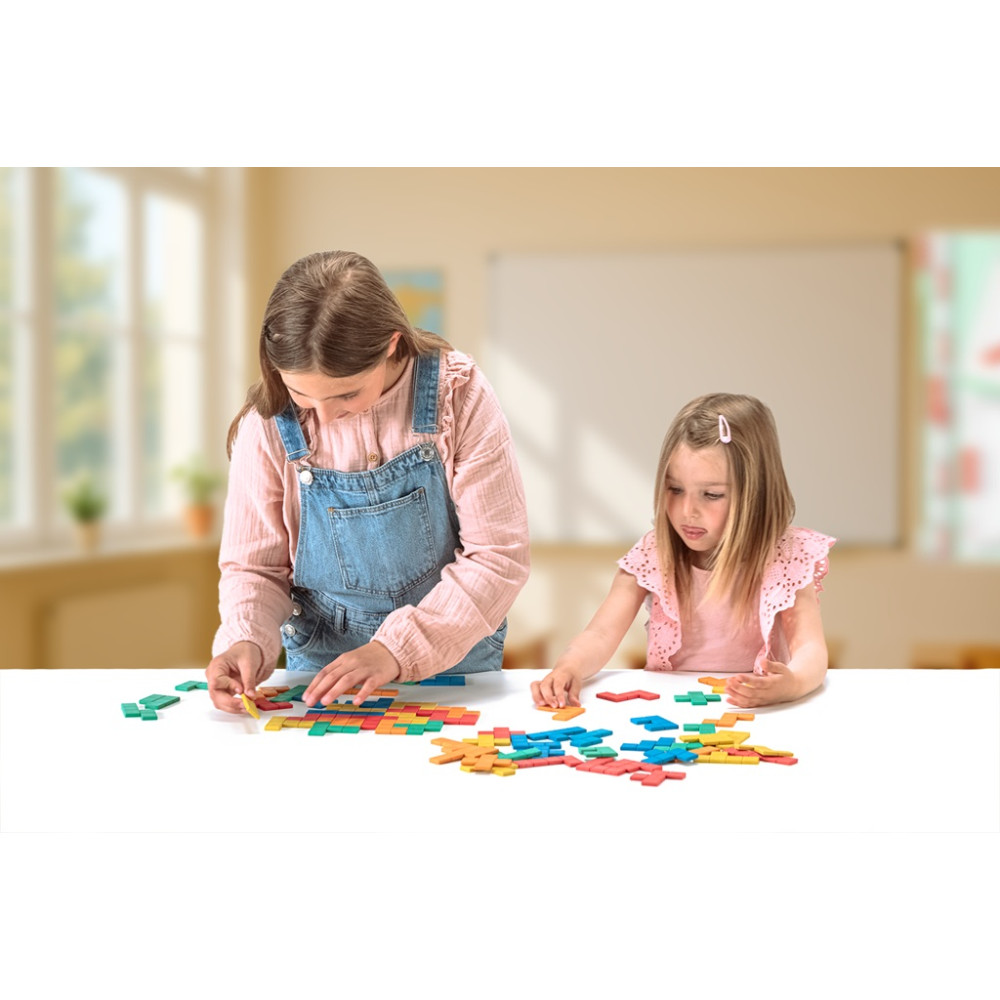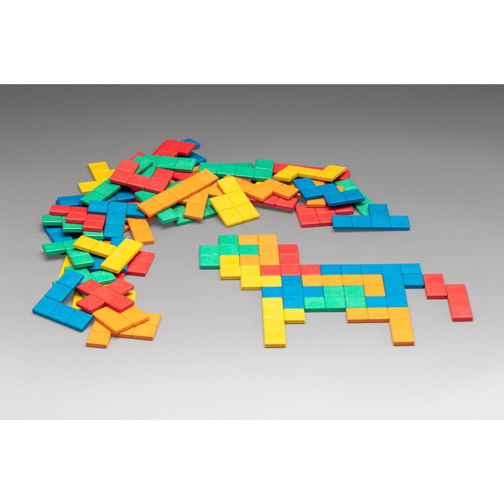 Pomocí 60 ks pentomin v 5 barvách (12 pentomin od každé barvy) si děti mohou poskládat různé obrázky dle vlastní fantazie nebo vyplňovat obrázky, kde je vyznačen pouze obrys. Prostřednictvím hry získají první zkušenosti s geometrií, zjistí, co je plocha a obvod, které útvary jsou symetrické a které ne.