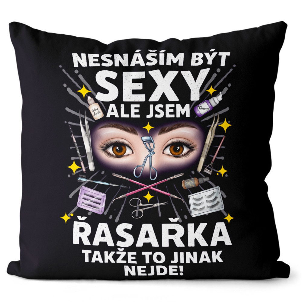 Originální polštářek s vtipným textem a motivem pro řasařku. Má oboustranný potisk se zapínáním a vyjímatelnou výplň.