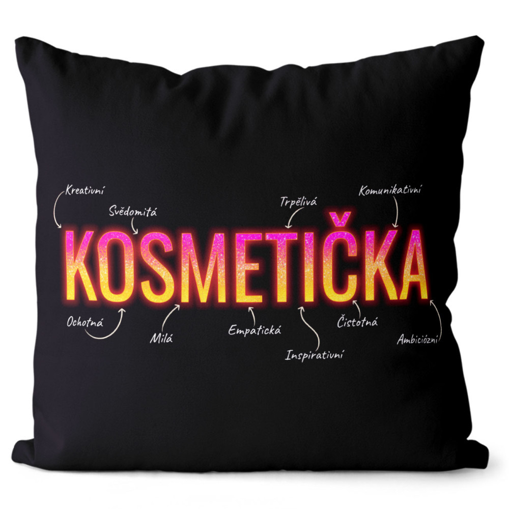 Originální polštářek s vtipným textem a motivem pro kosmetičku. Má oboustranný potisk se zapínáním a vyjímatelnou výplň.