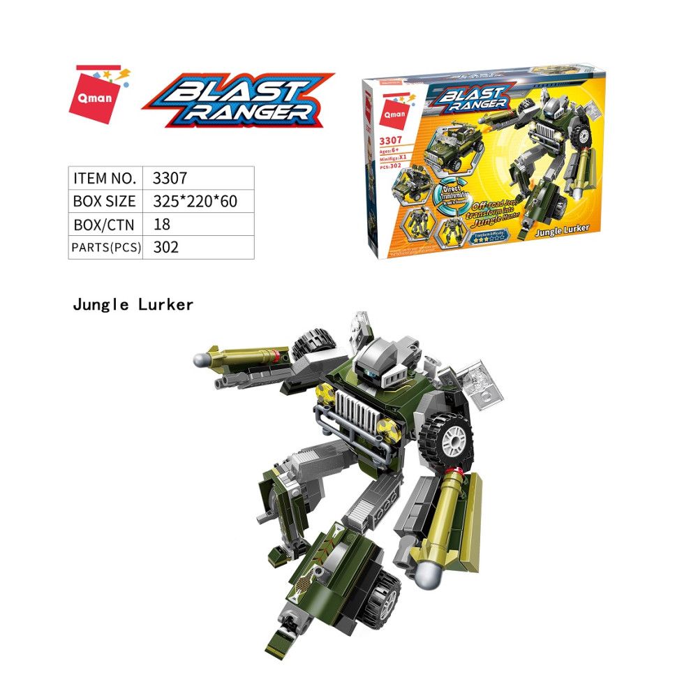 Přeměňujte roboty ve vozidla a naopak, snadno a bez nutnosti je rozebírat! Ve výkonném autě dřímá robotický strážce ihned připravený chránit svou posádku, přesně jako ve filmu! Vysoce variabilní stavebnice Qman z pestrobarevných plastových kostiček lze kombinovat s podobnými stavebnicemi mnoha dalších významných výrobců. Vyrobeno z kvalitního, nezávadného a odolného ABS plastu.