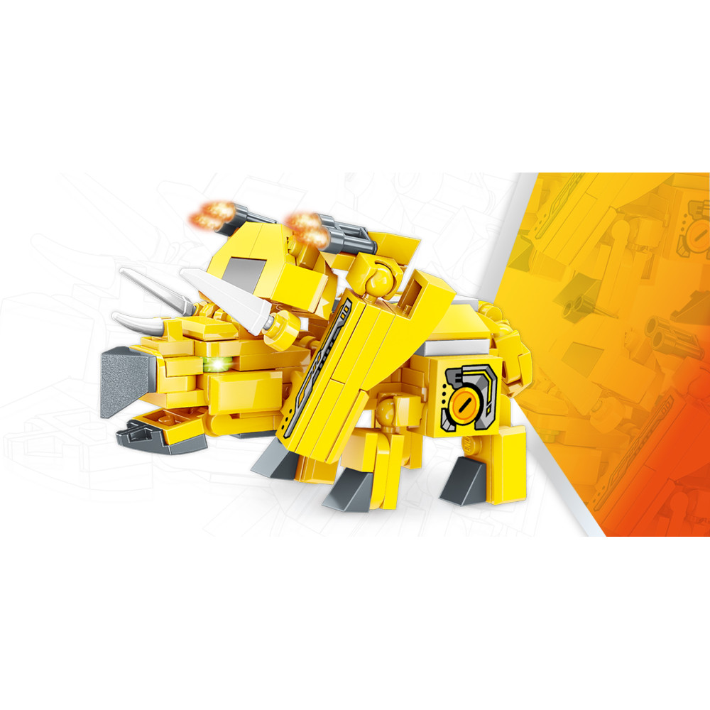 Když se kostka rozloží, obrněný zvířecí stroj zaujme útočný postoj. Stavebnice akční figury robotického dinosaura. Vysoce variabilní stavebnice Qman z pestrobarevných plastových kostiček lze kombinovat s podobnými stavebnicemi mnoha dalších významných výrobců. Vyrobeno z kvalitního, nezávadného a odolného ABS plastu. Baleno v pestře potištěné papírové krabičce.