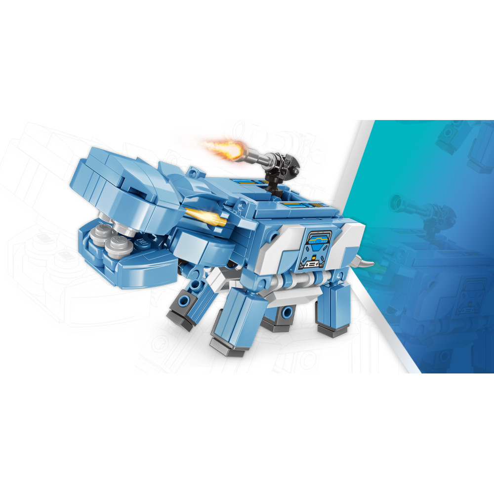 Když se kostka rozloží, obrněný zvířecí stroj zaujme útočný postoj. Stavebnice akční figury robotického hrocha. Vysoce variabilní stavebnice Qman z pestrobarevných plastových kostiček lze kombinovat s podobnými stavebnicemi mnoha dalších významných výrobců. Vyrobeno z kvalitního, nezávadného a odolného ABS plastu.