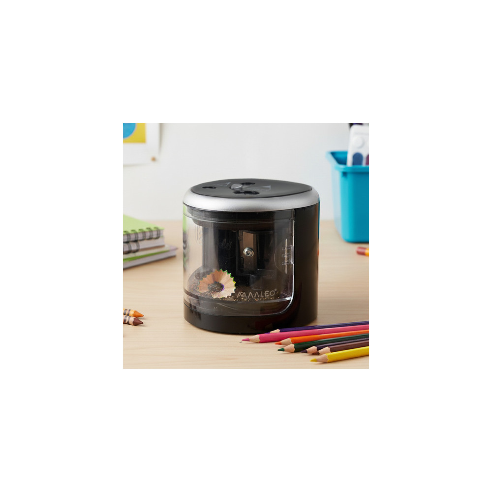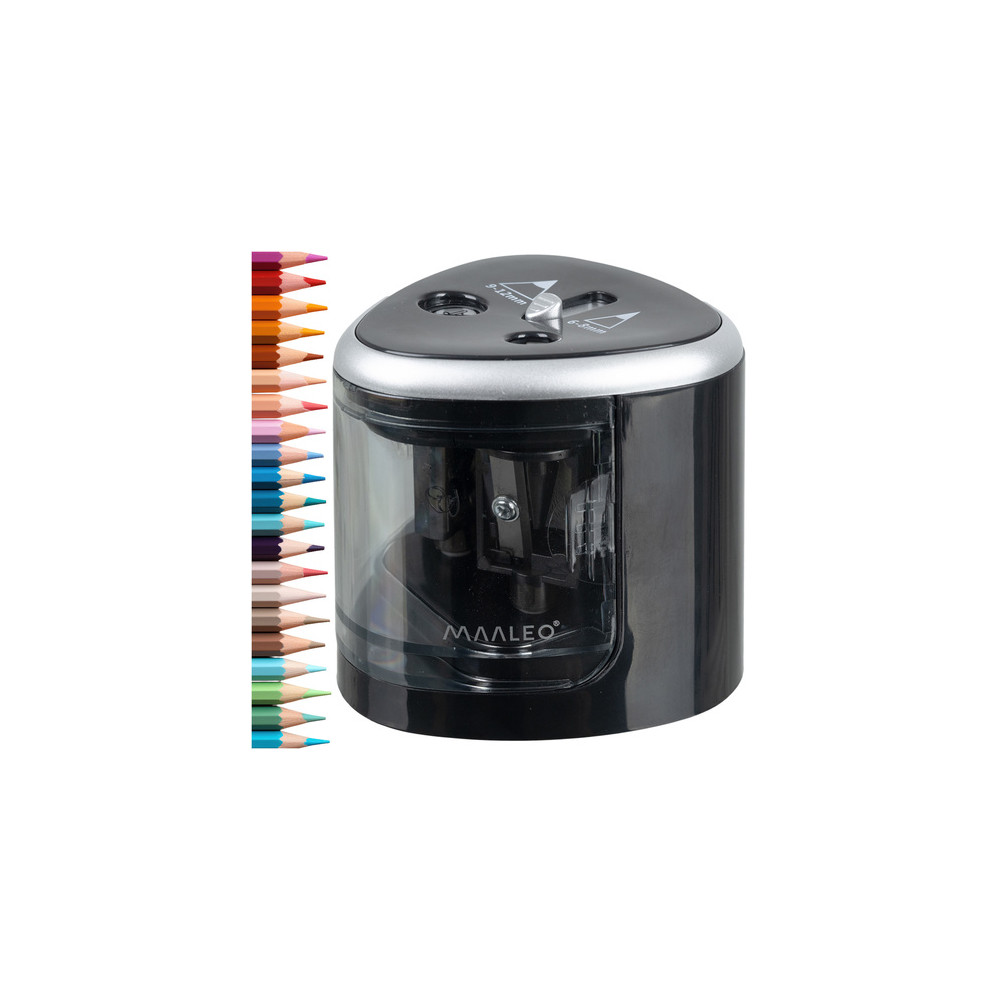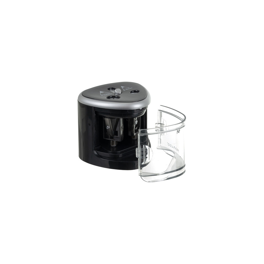 Elektrické ořezávátko na tužky a pastelky se 2 vyměnitelnými čepelemi je nenahraditelným mástrojem do školy. Umožňuje brousit jak klasické tužky, tak i silnější. Průhledná nádobka umožňuje kontrolu plnosti odřezků.