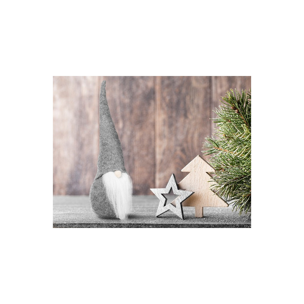 Ozdobná figurka skřítka v šedé barvě je milou dekorací v období Vánoc. Skřítek se bude hezky vyjímat pod vánočním stromečkem, na komodě, poličce nebo na okně. Skřítek je vyroben z kvalitní plsti a plastu. Díky dodatečné zátěži uvnitř stojí stabilně a je odolný proti poškození a při pádu se nepoškodí.