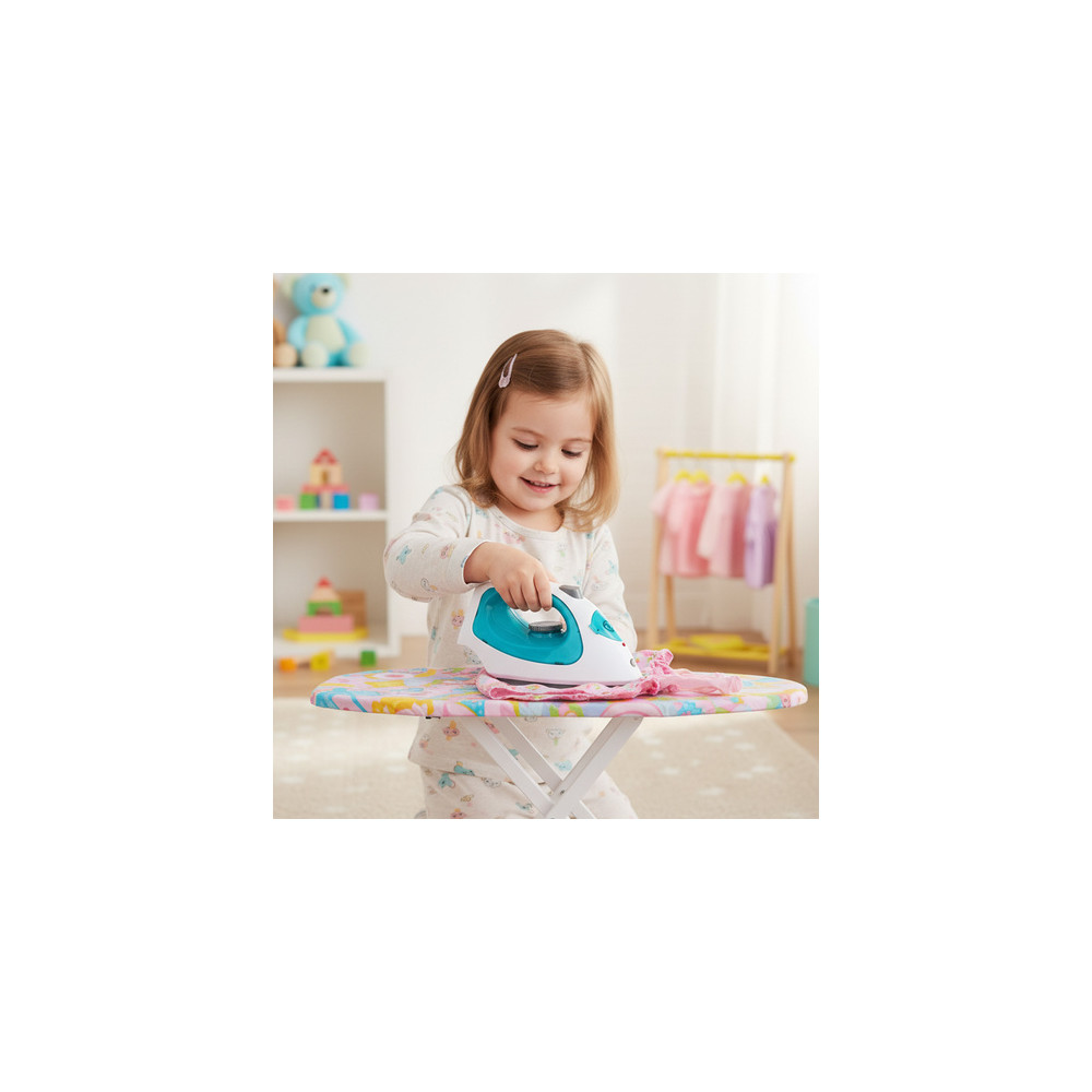 Dětská žehlička se zvukovými efekty podporuje kreativitu, manuální dovednosti a představivost. Děti rády napodobují každodenní činnosti svých rodičů. Žehlička má realistické funkce, jako je nádržka na vodu, funkční tlačítko, pohyblivý knoflík se symbolem páry a světelné a zvukové efekty.