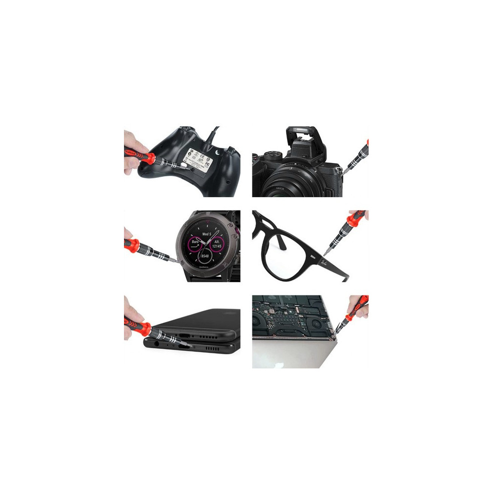 Sada je určena pro opravy telefonů, chytrých telefonů a tabletů, ale i všech ostatních zařízení a zařízení, která mají nestandardní, malé šroubky. Servisní sada má široké uplatnění a lze ji s úspěchem použít při opravách šperků a hodinek, ale i při opravách elektronických nebo optických zařízení. Je také ideální pro drobné domácí opravy, které vyžadují šroubováky.