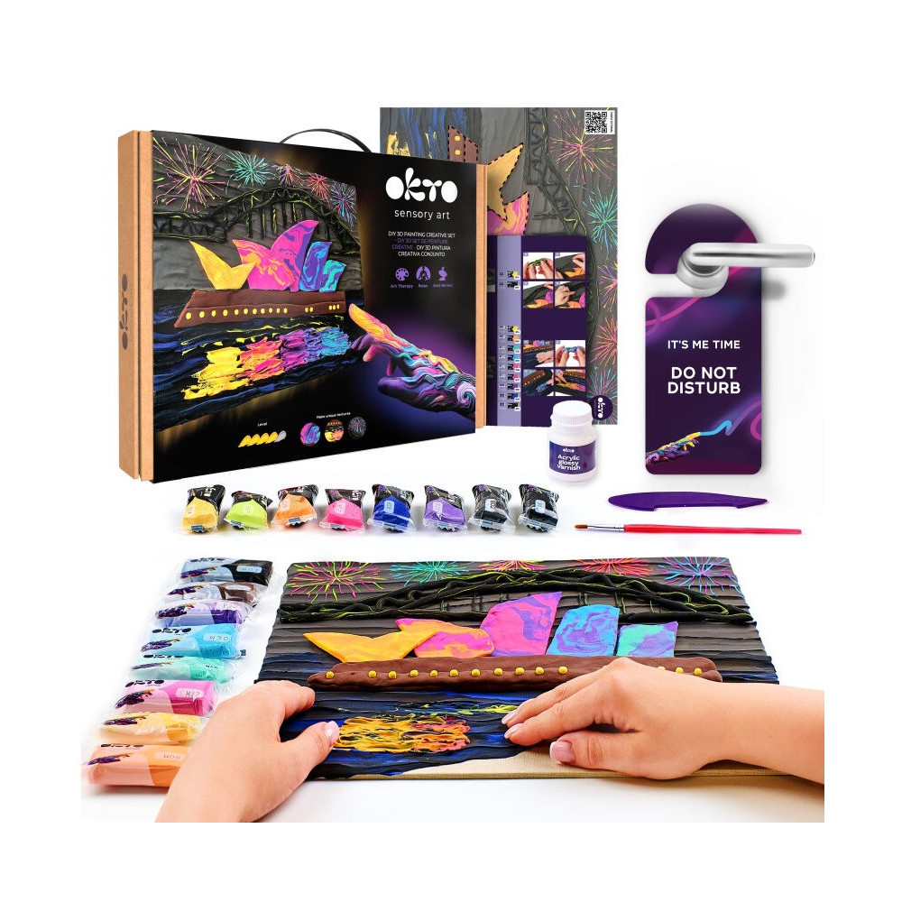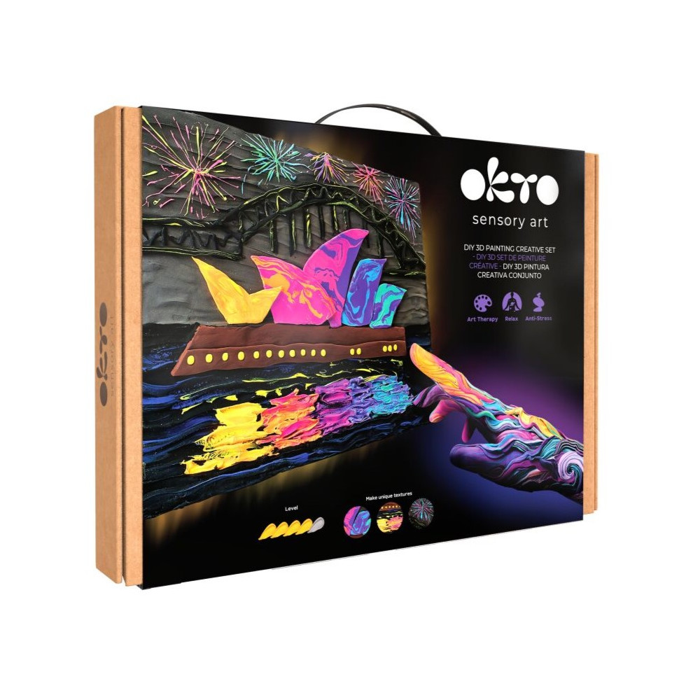 OKTO SENSORY ART výtvarná sada ”Sydney Opera” je kreativní sada, kde si pomocí modelovací hmoty vytvoříte svůj vlastní 3D umělecký obraz. Vše potřebné najdete v sadě. Součástí balení je i QR kód pod kterým najdete videonávod pro tvoření.