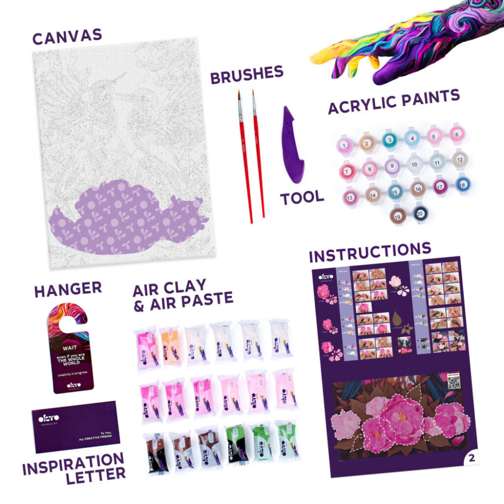 OKTO SENSORY ART výtvarná sada s malováním 30x40 cm - Kolibříci