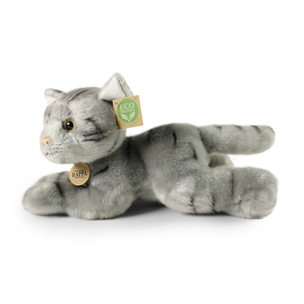 Rappa Plyšová kočka šedá ležící 30 cm ECO-FRIENDLY
