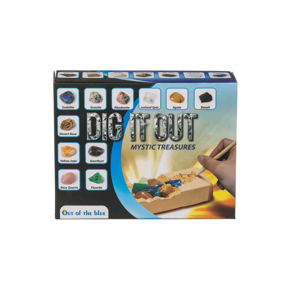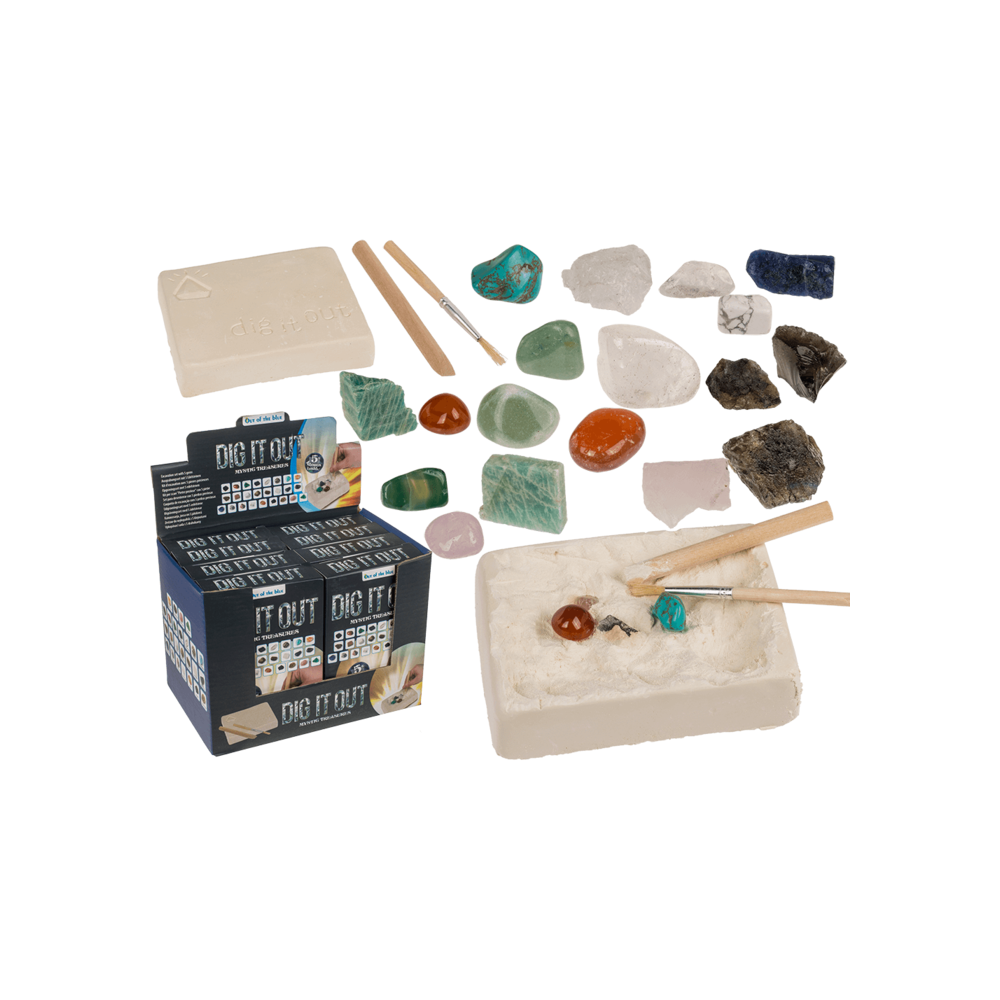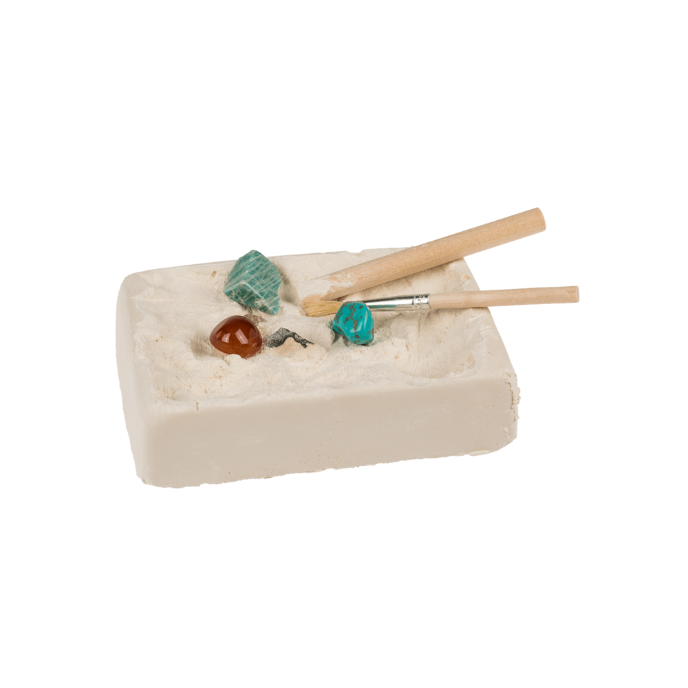 Zahrajte si na archeologa a vykopejte si vlastních 5 drahokamů. V každém balení může být jiný druh kamenů. V balení najdete kostku hmoty, ve které jsou již kameny ukryté a sadu náčiní.