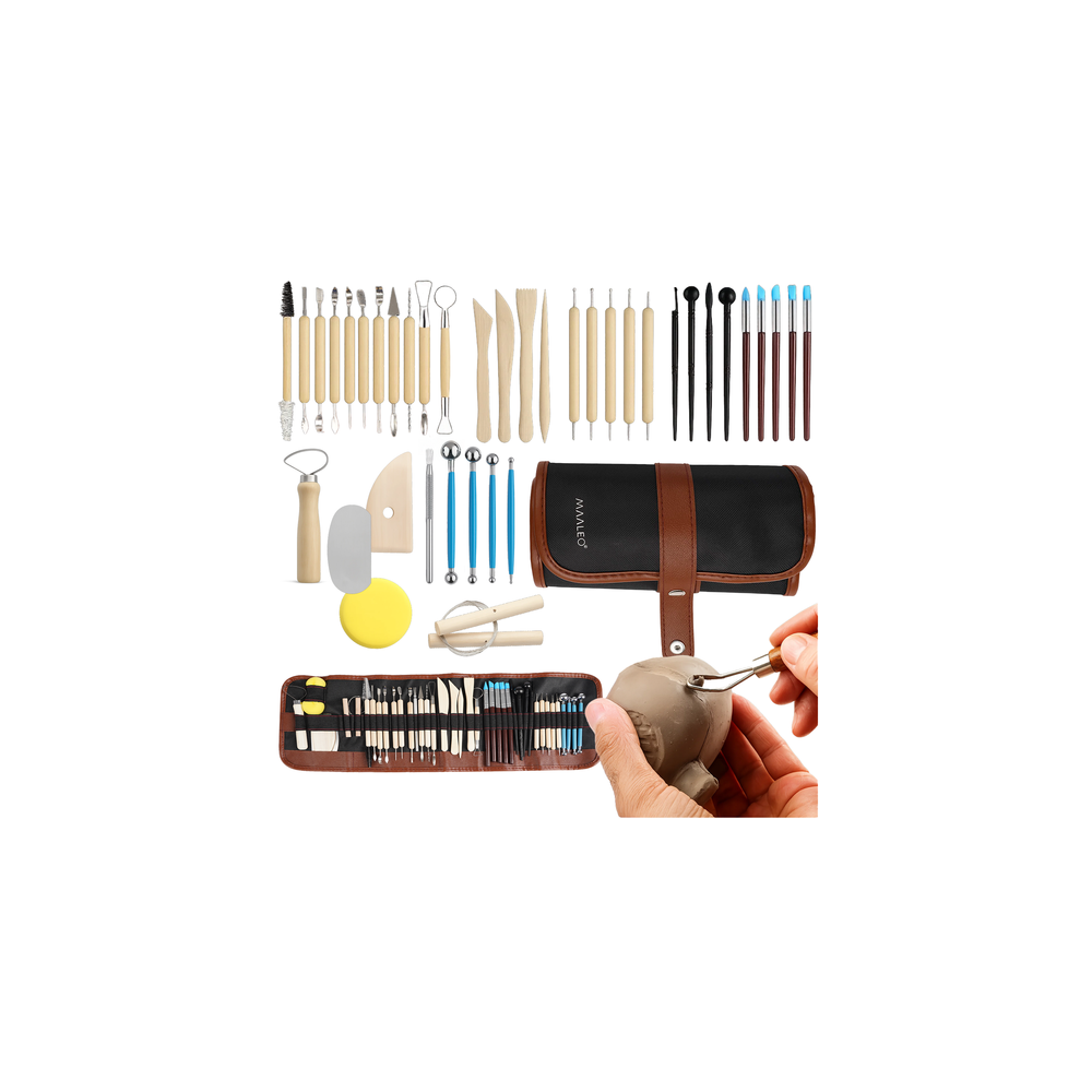 Sada nástrojů vhodná pro sochařství a modelování z hlíny. Kompletní sada v praktickém rolovatelném pouzdře je ideální pro všechny nadšence do keramiky a umění.