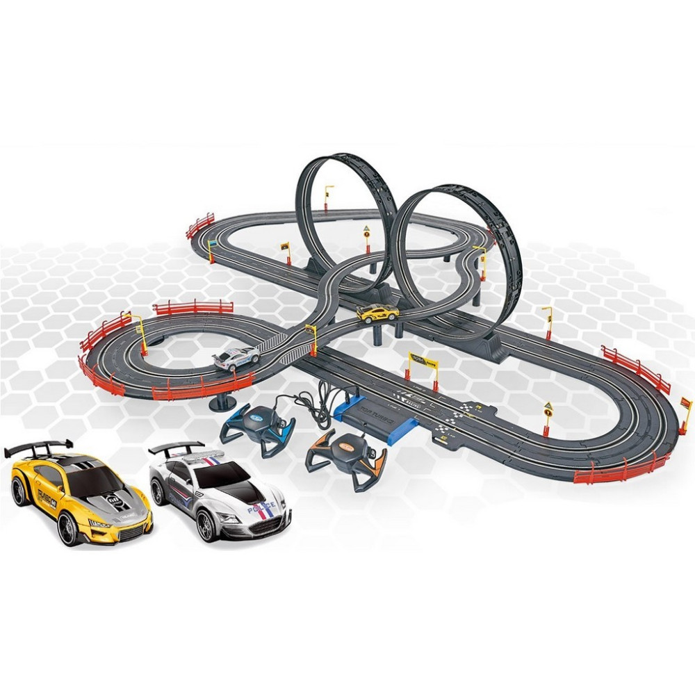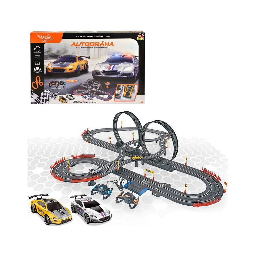 Autodráha z produktové řady Racing Collection obsahuje 2 auta, 2 ovladače, lopingy s mostem a s příslušenstvím. Spousta zábavy pro celou rodinu v jedné krabici. Celkový zážitek ze hry umocní realistické zvuky a světelné efekty. Jednoduchá manipulace a celkově snadná montáž. Sestavte a můžete začít. Kdo bude nejrychlejším závodníkem?