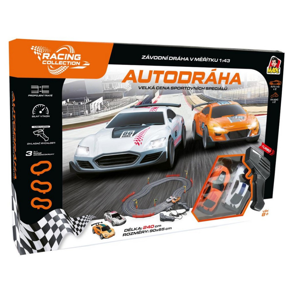 Autodráha je skvělou zábavou pro všechny malé i velké závodníky. Autodráha z produktové řady Racing Collection a obsahuje 2 auta závodní speciály, 2 ovladače s USB kabelem pro externí napájení a příslušenství. Vše je baleno v českém boxu.