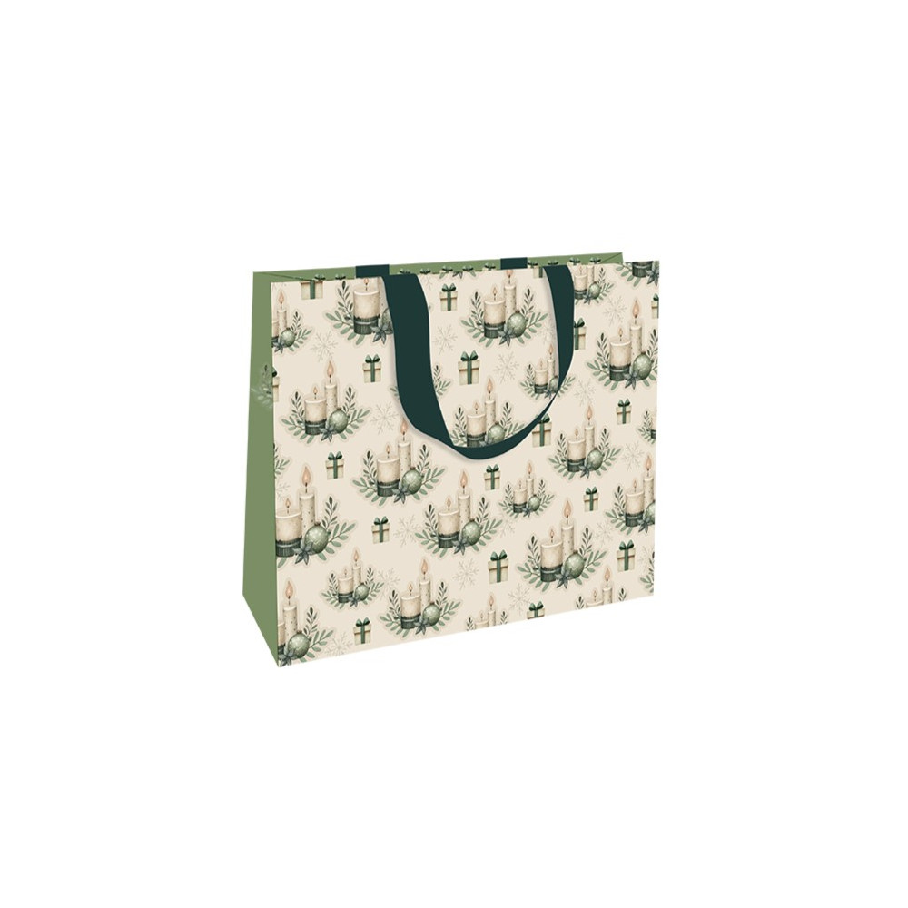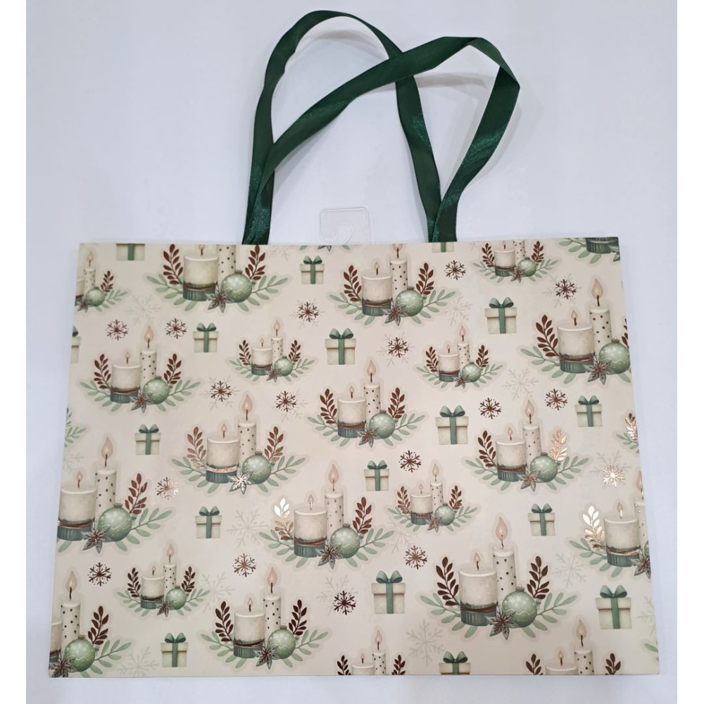 Krásná darková taška s vánoční motivem velkého rozměru se saténovou stužkou a zlatou leskou ražbou.