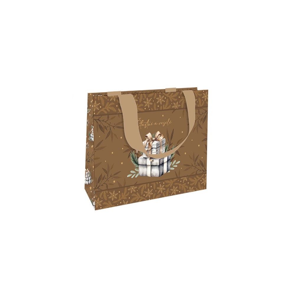 Nekupto Vánoční dárková taška střední luxusní Dárečky šťastné a veselé