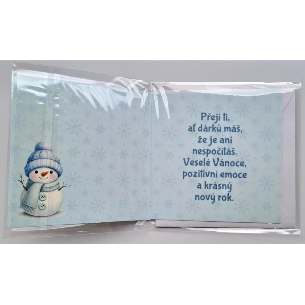 Malé papírové přání s vánočním motivem. Součástí přání je i bílá papírová obálka. Uvnitř každého přání je text s vánočním věnováním.