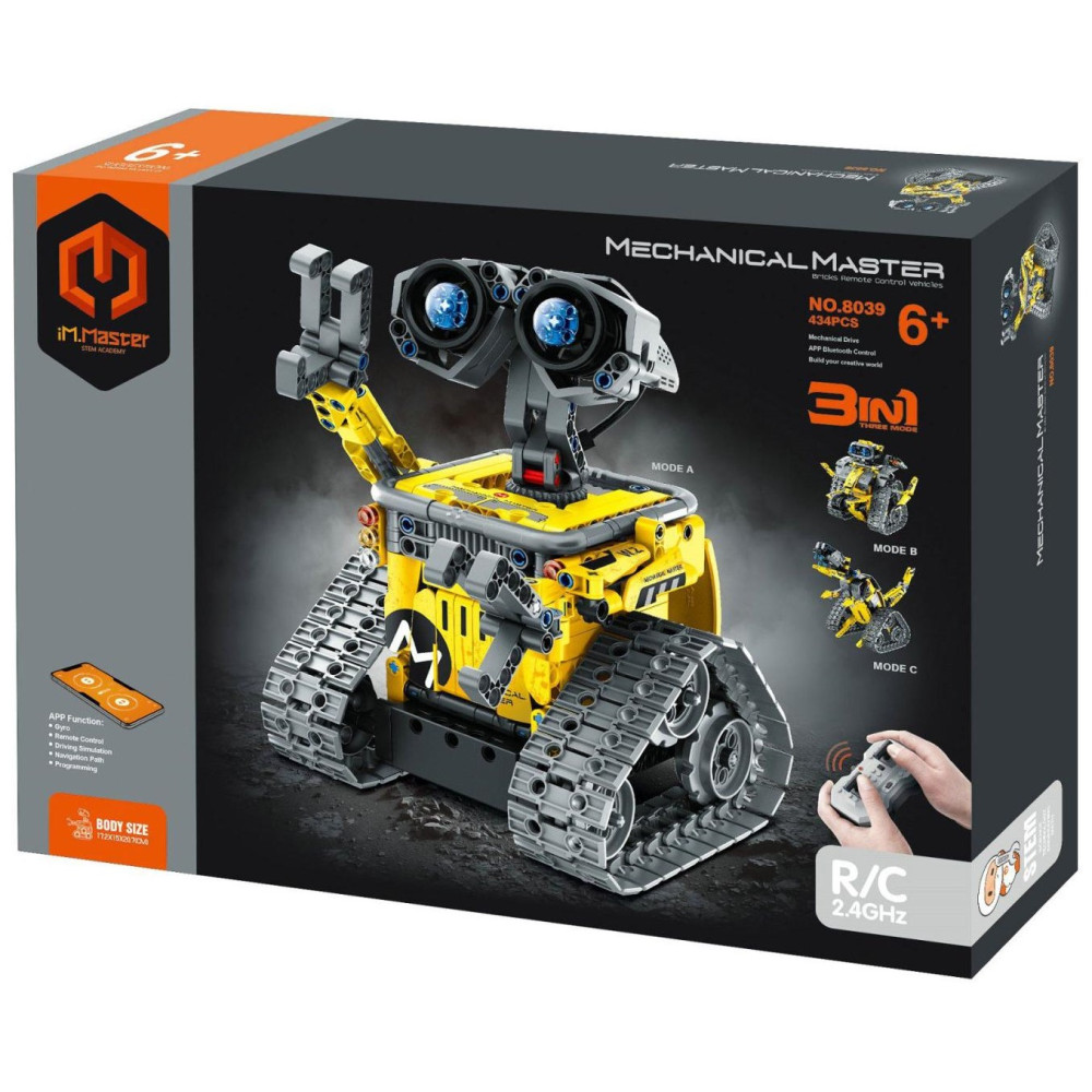 Postavte si svého vlastního robota! S touto chytrou stavebnicí iM.MASTER si děti mohou vytvořit až 3 různé modely – robot, pásové vozidlo nebo jiný mechanický stroj – a všechny ovládat pomocí dálkového ovladače nebo mobilní aplikace. Stavebnice obsahuje 434 dílků. 3v1 model - možnost postavit 3 různé varianty robota. RC ovládání na frekvenci 2,4 GHz - stabilní signál, dosah až 25 m.
