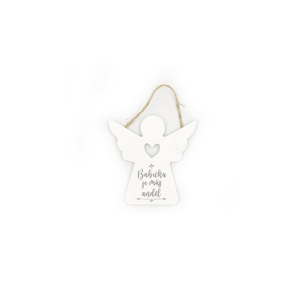 Dřevěná cedulka ve tvaru andílka s milým věnováním "Babička je můj anděl" každou babičku zaručeně potěší.