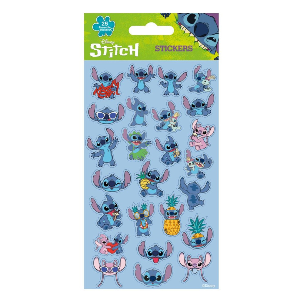 Opakovaně použitelné samolepky s licenčním motivem. Arch obsahuje 25 samolepek. Rozveselte si každý den veselými obrázky Stitche.