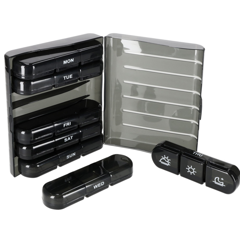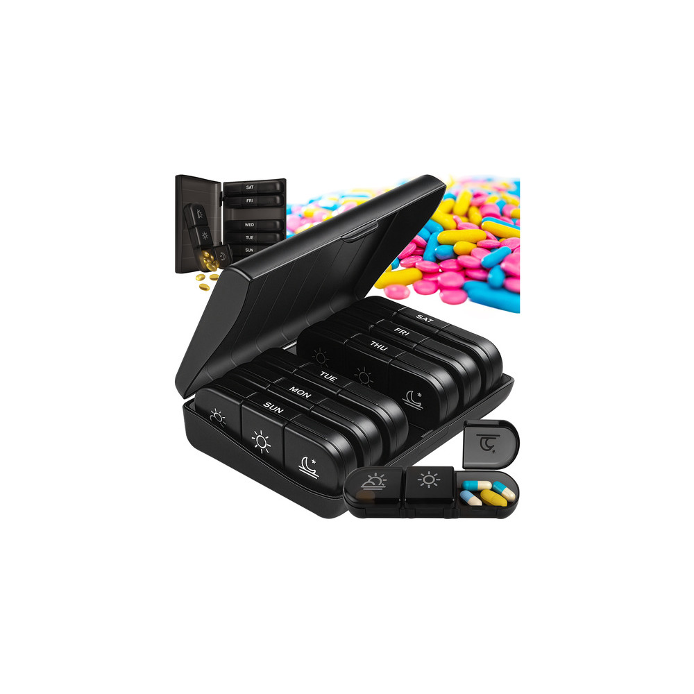 Týdenní organizér na léky pomáhá udržovat přehled v užívaných lécích. Díky přehlednému rozdělení na dny v týdnu a denní doby poskytuje plnou kontrolu nad harmonogramem léků. Ideální bude také na cestování nebo každodenní nošení v tašce.