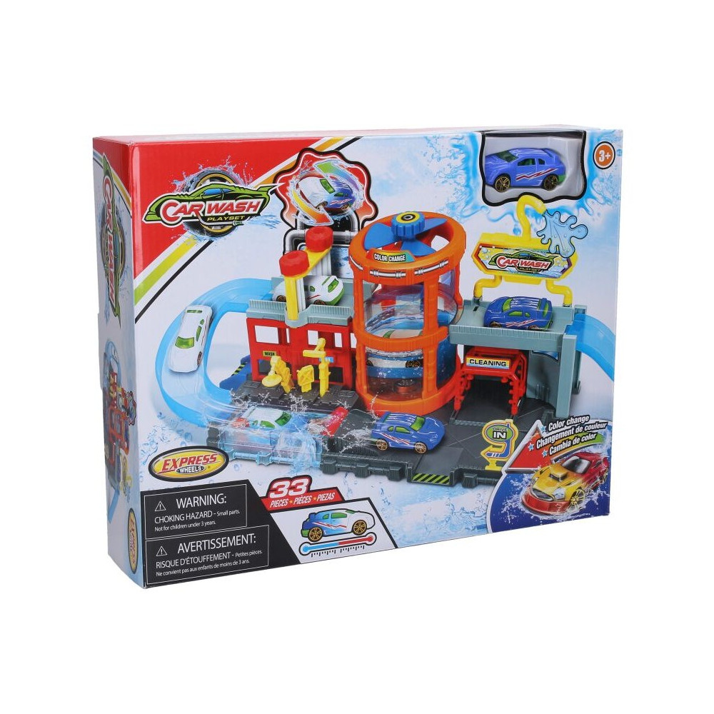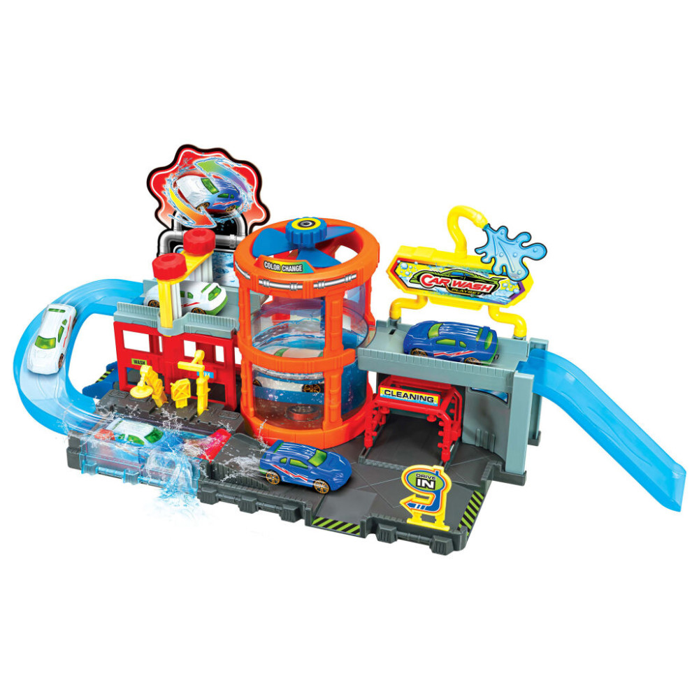 Myčka aut s autíčkem, které mění barvu. Obsahuje nádrž, která se naplní vodou a po ponoření auta do vody změní autíčko barvu. Záleží na teplotě vody. Teplá voda změní barvu a studená vrátí barvu původní.