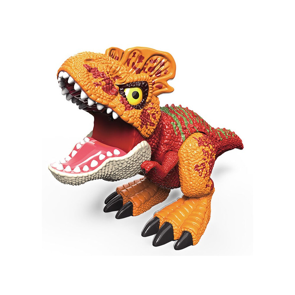 Červený dinosaurus se světelnými a zvukovými efekty. Má manuálně otevírací tlamu, pohyblivou a dopředu vytahovací hlavu, pohyblivý ocas i přední a zadní končetiny.