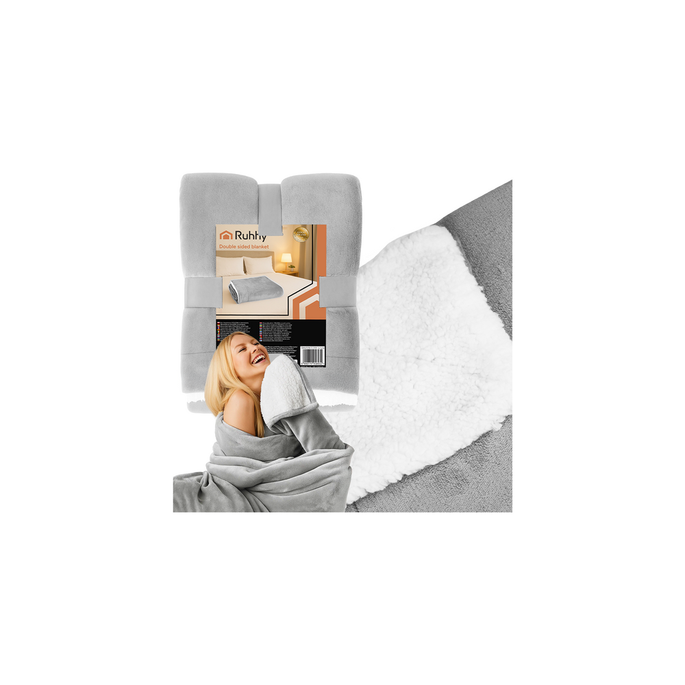 Silná oboustranná deka ve světle šedé barvě. Z jedné strany je deka příjemná na dotek jak plyšák a z druhé Vás zahřeje tlustší kožíšek připomínající beránka. Výborný pomocník při relaxaci doma v zimním období.