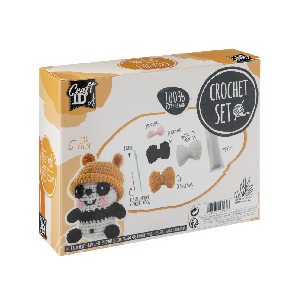 Kreativní sada na háčkování, která obsahuje vše potřebné abyste si sami uháčkovali krásné zvířátko a to pandičku.