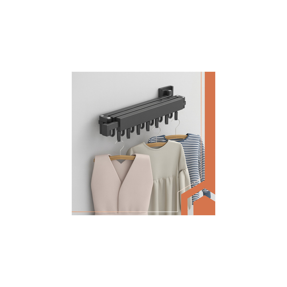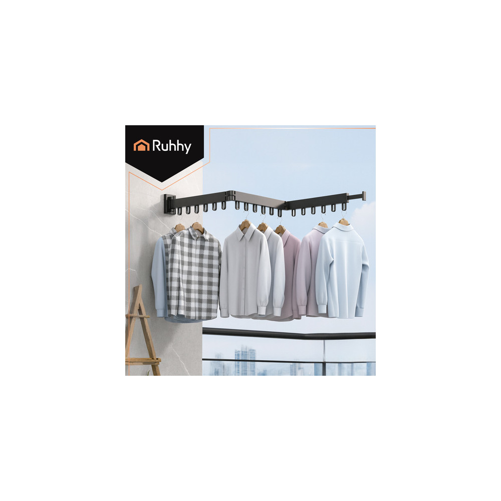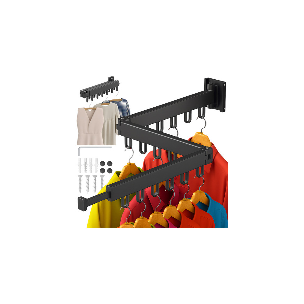Výsuvný nástěnný věšák na prádlo je vhodný pro sušení prádla nebo jiné potřebné skladování zavěšeného oblečení. Po montáži na zeď nezabírá místo na podlaze jako obyčejný sušák. Věšák má trojitou skládací konstrukci a dohromady 18 háčků. Bude se hodit v prádelně, na balkon, do koupelny nebo do dalších malých prostorů.